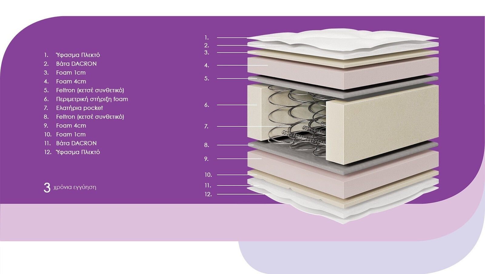 Το ορθοπεδικό στρώμα της εταιρείας Chic Strom είναι διπλής όψης και μέτριας σκληρότητας και διαθέτει ελατήρια ανοιχτού τύπου (Bonnel Springs) υποστηριζόμενα από μια ενιαία ατσάλινη ράβδο με σκοπό να παρέχουν μεγάλη αντοχή και σταθερότητα. Ως κύριο υλικό περιέχει αφρό πολυουρεθάνης (foam), που το καθιστά πιο δροσερό στις υψηλές θερμοκρασίες και ταυτόχρονα παρέχει μια αίσθηση βύθισης, χωρίς όμως την απομόνωση της κάθε κίνησης του σώματος.