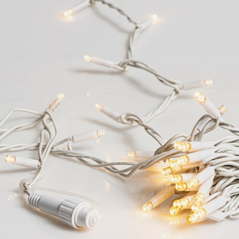 • 100Led Rubber Λαμπάκια Επεκτεινόμενα Με Λευκό Καλώδιο/Θερμό Λαμπάκι ,Ip44 , 10 Μέτρα