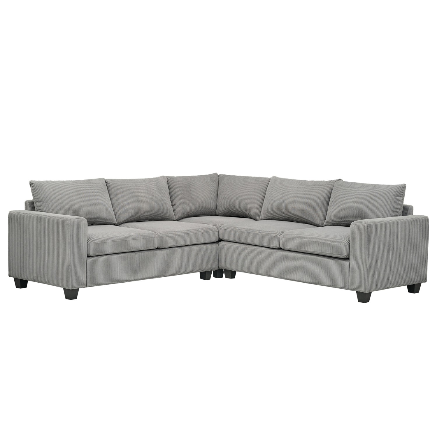 Ο CALDER είναι ένας μεγάλος σταθερός γωνιακός καναπές. Το χρώμα της επένδυσης ολόκληρου του καναπέ είναι ΓΚΡΙ. Αποτελείται από 2 πλευρές με ίδιες διαστάσεις και ένα γωνιακό τμήμα που δένει τις 2 πλευρές. Τέλος, τα πόδια του καναπέ είναι χαμηλά δίνοντας στιβαρότητα σε όλη την κατασκευή.