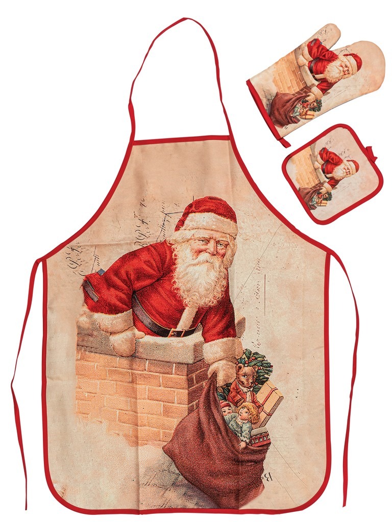 Σέτ 3 Τεμαχίων Ποδιά ,Γάντι Και Πετσέτα Φούρνου Με Χριστουγεννιάτικες Φιγούρες