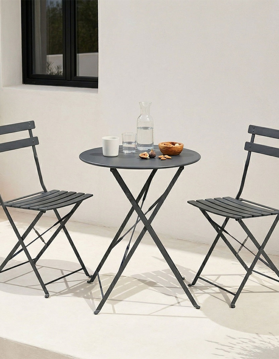 Αναβαθμίστε τον εξωτερικό σας χώρο με αυτό το εντυπωσιακό, σετ bistro! Ιδανικό για να απολαύσετε τον πρωινό σας καφέ, ένα χαλαρό γεύμα ή ένα ποτήρι κρασί στο μπαλκόνι, την αυλή ή τον κήπο σας.