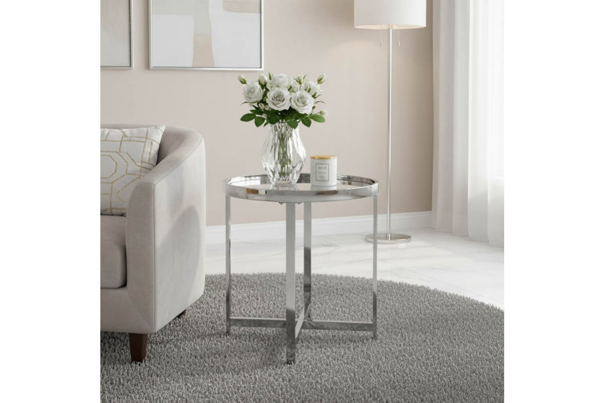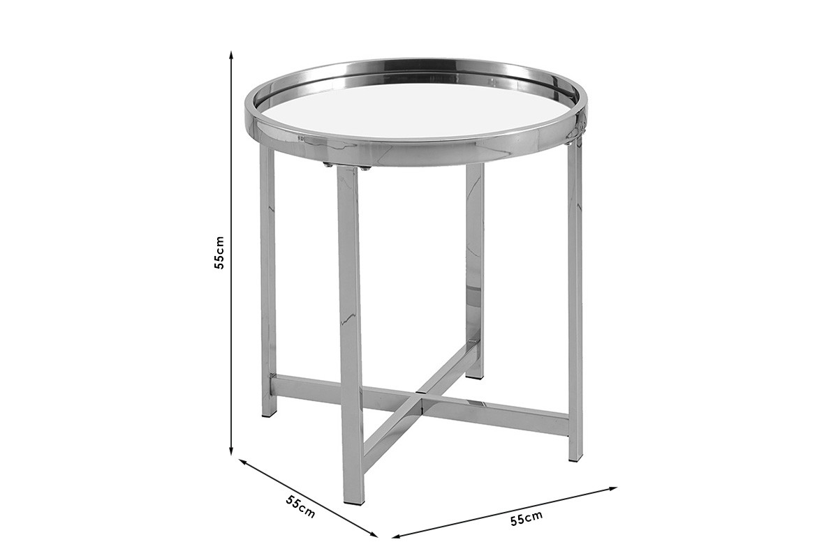Βοηθητικό τραπέζι σαλονιού Tristan μέταλλο ασημί-γυαλί Φ55×55εκ